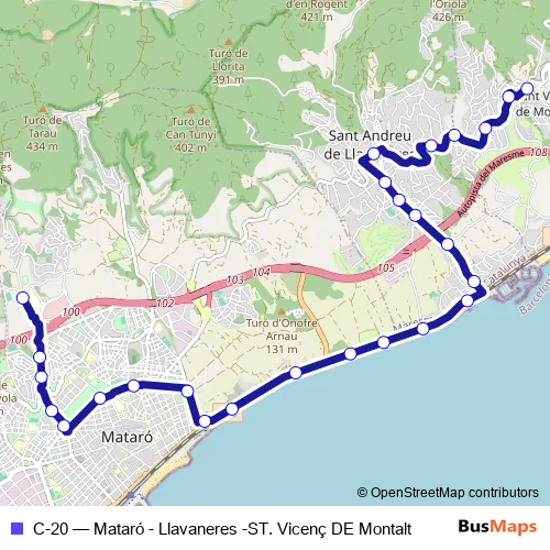 Click here to view the nearest C-20 - Mataró - Llavaneres -ST. Vicenç DE Montalt bus stop.