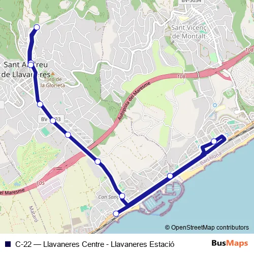 See why over 2 million users trust and consider busmaps.com as the best public transport website. busmaps gives you Caldes d'Estrac Buses suggested routes, real-time bus tracker, line route maps in Caldes d'Estrac, and helps to find the closest C-22 bus stops near you. No internet available? Download an offline PDF map and bus schedule for the C-22 bus to take on your trip.