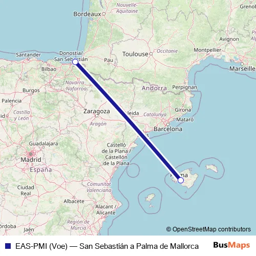 Click here to view the nearest EAS-PMI (Voe) - San Sebastián a Palma de Mallorca air stop.