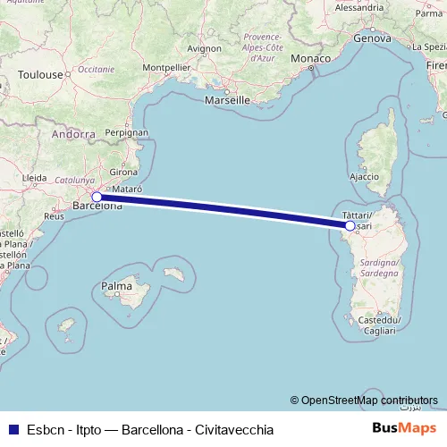 Ferry Esbcn - Itpto - Barcellona - Civitavecchia in Porto Torres: Stops & Timetable