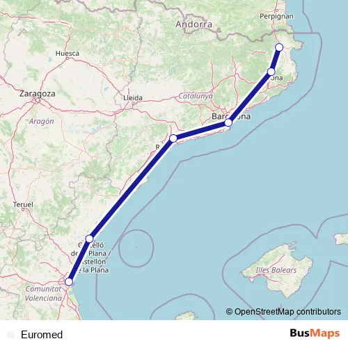 See why over 2 million users trust and consider busmaps.com as the best public transport website. busmaps gives you Castello de la Plana Rail Services suggested routes, real-time bus tracker, line route maps in Castello de la Plana, and helps to find the closest Euromed rail stops near you. No internet available? Download an offline PDF map and bus schedule for the Euromed rail to take on your trip.