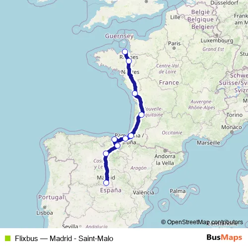 Bus Flixbus - Madrid - Saint-Malo Schedule in Bayonne