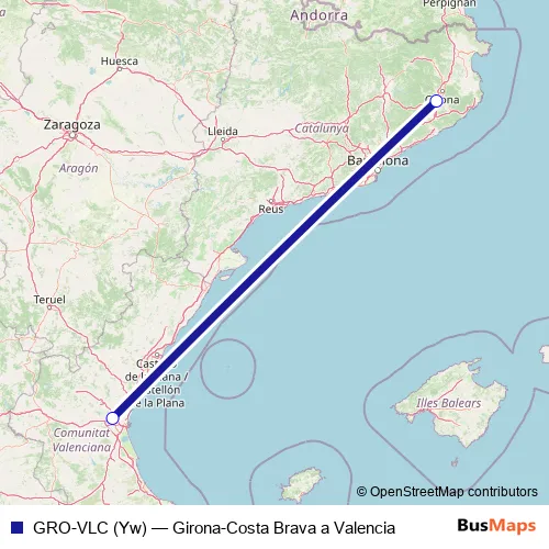 Click here to view the nearest GRO-VLC (Yw) - Girona-Costa Brava a Valencia air stop.