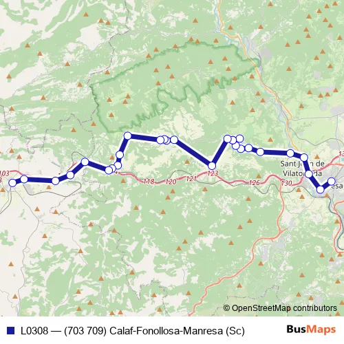 Click here to view the nearest L0308 - (703 709) Calaf-Fonollosa-Manresa (Sc) bus stop.