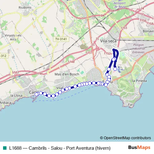 Bus L1688 - Cambrils - Salou - Port Aventura (hivern): Full Schedule in Cambrils