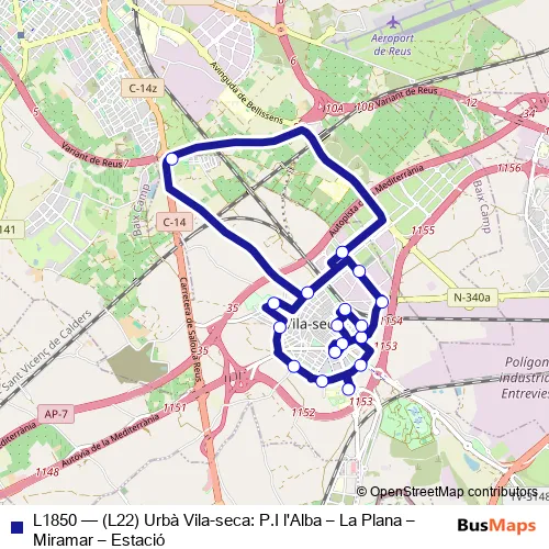 Click here to view the nearest L1850 - (L22) Urbà Vila-seca: P.I l'Alba – La Plana – Miramar – Estació bus stop.