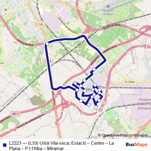 Click here to view the nearest L2223 - (L33) Urbà Vila-seca: Estació – Centre – La Plana – P.I l'Alba – Miramar bus stop.