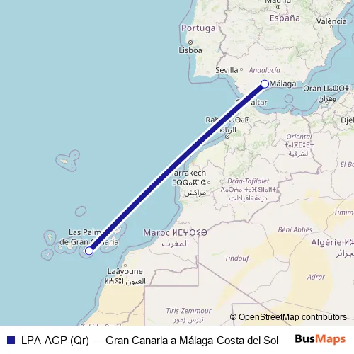 See why over 2 million users trust and consider busmaps.com as the best public transport website. busmaps gives you Malaga Flights suggested routes, real-time bus tracker, line route maps in Malaga, and helps to find the closest LPA-AGP (Qr) air stops near you. No internet available? Download an offline PDF map and bus schedule for the LPA-AGP (Qr) air to take on your trip.