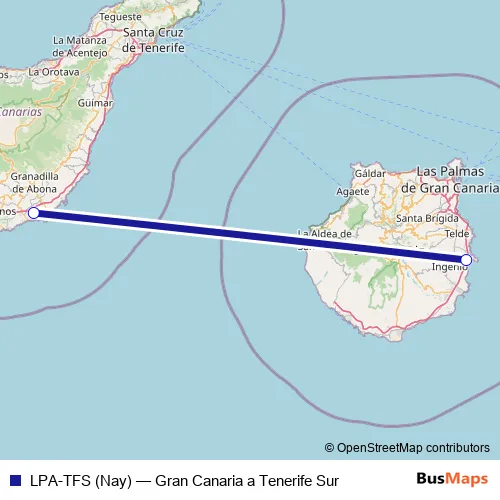 Click here to view the nearest LPA-TFS (Nay) - Gran Canaria a Tenerife Sur air stop.
