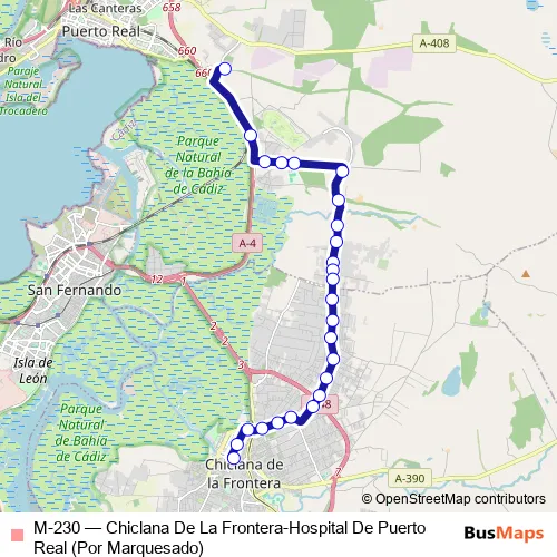 Bus M-230 - Chiclana De La Frontera-Hospital De Puerto Real (Por Marquesado): Full Schedule in Chiclana de la Frontera