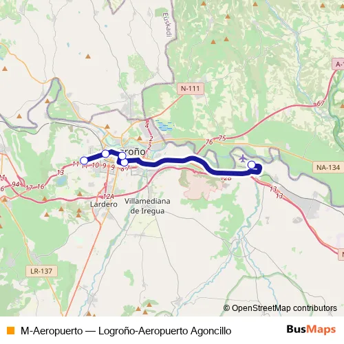 Click here to view the nearest M-Aeropuerto - Logroño-Aeropuerto Agoncillo bus stop.