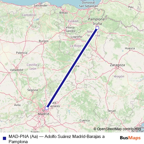 Click here to view the nearest MAD-PNA (Aa) - Adolfo Suárez Madrid-Barajas a Pamplona air stop.