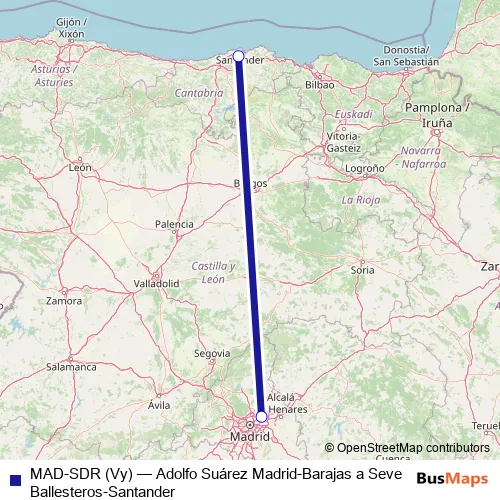 See why over 2 million users trust and consider busmaps.com as the best public transport website. busmaps gives you Santander Flights suggested routes, real-time bus tracker, line route maps in Santander, and helps to find the closest MAD-SDR (Vy) air stops near you. No internet available? Download an offline PDF map and bus schedule for the MAD-SDR (Vy) air to take on your trip.