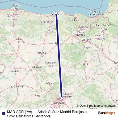 See why over 2 million users trust and consider busmaps.com as the best public transport website. busmaps gives you Santander Flights suggested routes, real-time bus tracker, line route maps in Santander, and helps to find the closest MAD-SDR (Yw) air stops near you. No internet available? Download an offline PDF map and bus schedule for the MAD-SDR (Yw) air to take on your trip.