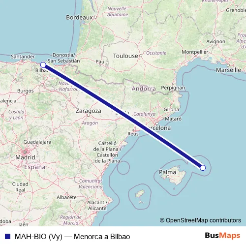 Click here to view the nearest MAH-BIO (Vy) - Menorca a Bilbao air stop.