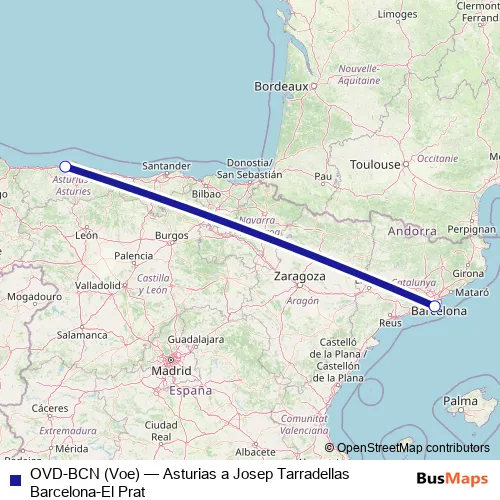 Click here to view the nearest OVD-BCN (Voe) - Asturias a Josep Tarradellas Barcelona-El Prat air stop.
