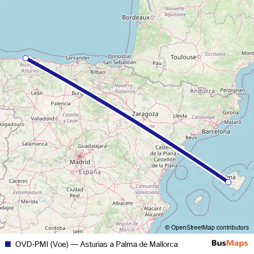Click here to view the nearest OVD-PMI (Voe) - Asturias a Palma de Mallorca air stop.