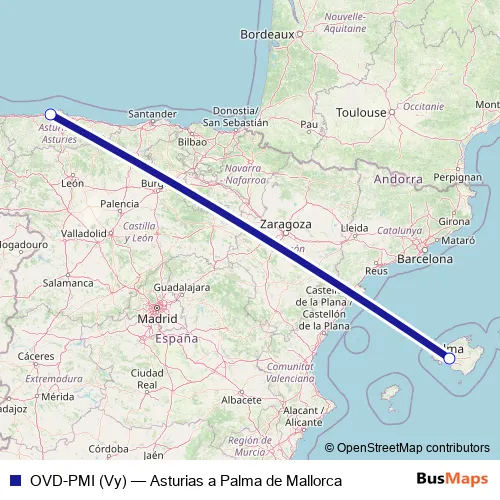 Click here to view the nearest OVD-PMI (Vy) - Asturias a Palma de Mallorca air stop.