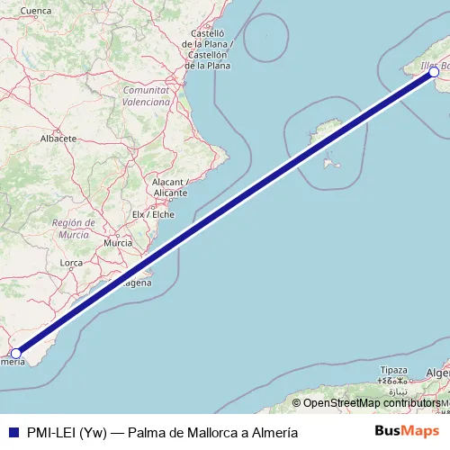 Click here to view the nearest PMI-LEI (Yw) - Palma de Mallorca a Almería air stop.