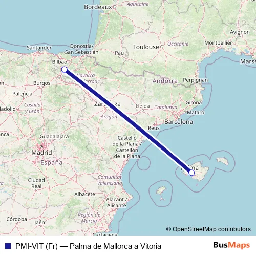 Click here to view the nearest PMI-VIT (Fr) - Palma de Mallorca a Vitoria air stop.