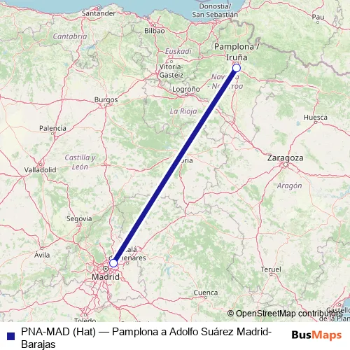 Click here to view the nearest PNA-MAD (Hat) - Pamplona a Adolfo Suárez Madrid-Barajas air stop.