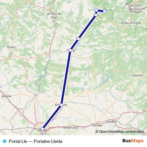 The first stop of the Portai-Lle bus route is Port Ainé and the last stop is Lleida. Portai-Lle (Portaine-Lleida) is operational during caps de setmana.