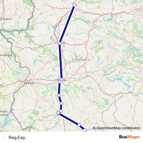 The first stop of the Reg.Exp. rail route is Fuente Del Arco and the last stop is Plasencia. Reg.Exp. is operational during cada dia.