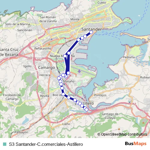 S3 Santander-C.comerciales-Astillero bus Route Map