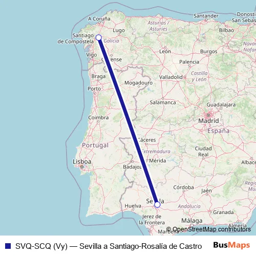 See why over 2 million users trust and consider busmaps.com as the best public transport website. busmaps gives you Sevilla Flights suggested routes, real-time bus tracker, line route maps in Sevilla, and helps to find the closest SVQ-SCQ (Vy) air stops near you. No internet available? Download an offline PDF map and bus schedule for the SVQ-SCQ (Vy) air to take on your trip.