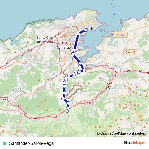 See why over 2 million users trust and consider busmaps.com as the best public transport website. busmaps gives you Santa Maria de Cayon Buses suggested routes, real-time bus tracker, line route maps in Santa Maria de Cayon, and helps to find the closest Santander-Saron-Vega bus stops near you. No internet available? Download an offline PDF map and bus schedule for the Santander-Saron-Vega bus to take on your trip.