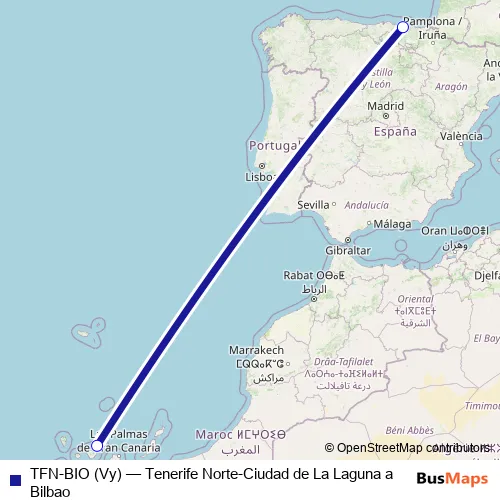 Click here to view the nearest TFN-BIO (Vy) - Tenerife Norte-Ciudad de La Laguna a Bilbao air stop.