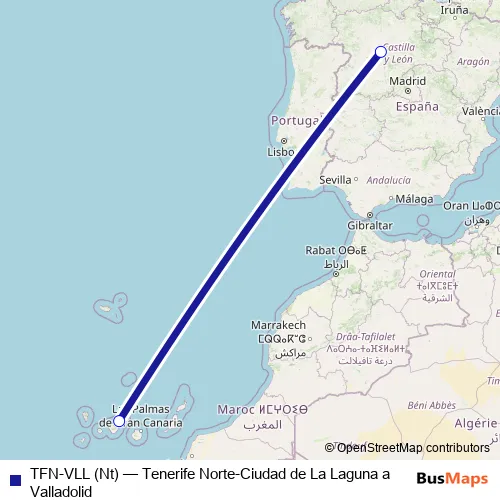 Click here to view the nearest TFN-VLL (Nt) - Tenerife Norte-Ciudad de La Laguna a Valladolid air stop.