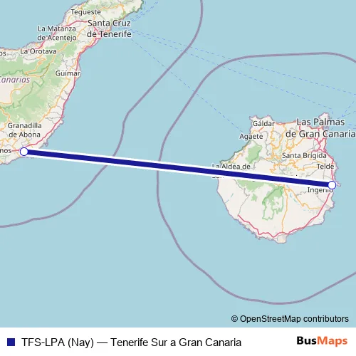 Click here to view the nearest TFS-LPA (Nay) - Tenerife Sur a Gran Canaria air stop.