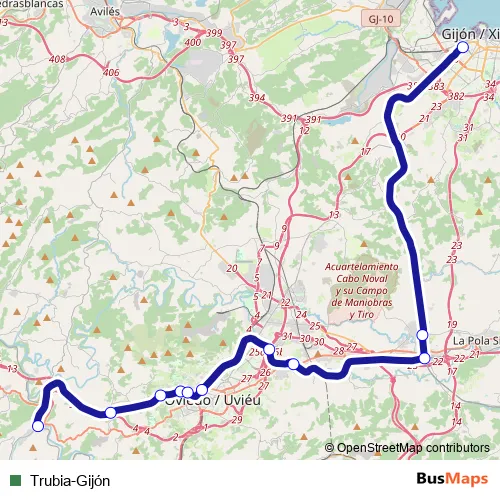 Additional information: Trubia-Gijón has 11 stops and the total trip duration for this route is approximately 50 minutes.