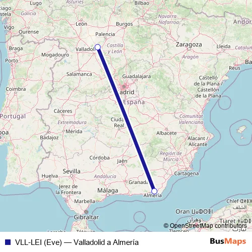 Click here to view the nearest VLL-LEI (Eve) - Valladolid a Almería air stop.