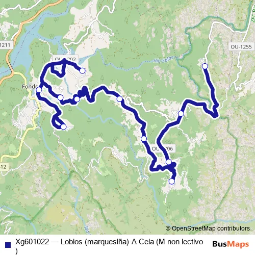 The first stop of the Xg601022 bus route is Lobios (Marquesiña) and the last stop is A Cela. Xg601022 (Lobios (marquesiña)-A Cela (M non lectivo)) is operational during cada dia.