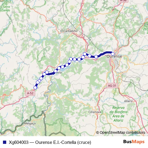 Bus Xg604003 - Ourense E.I.-Cortella (cruce) in Melon: Stops & Timetable