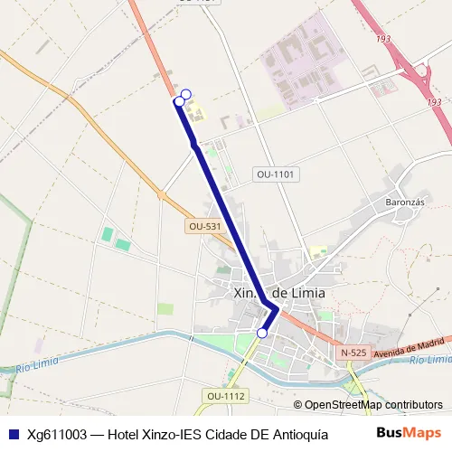 Click here to view the nearest Xg611003 - Hotel Xinzo-IES Cidade DE Antioquía bus stop.