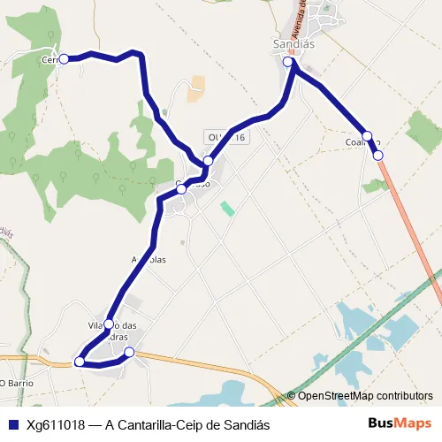 Click here to view the nearest Xg611018 - A Cantarilla-Ceip de Sandiás bus stop.