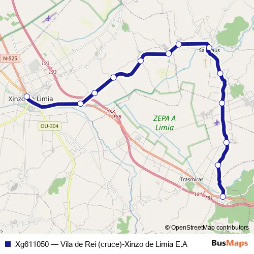 Click here to view the nearest Xg611050 - Vila de Rei (cruce)-Xinzo de Limia E.A bus stop.