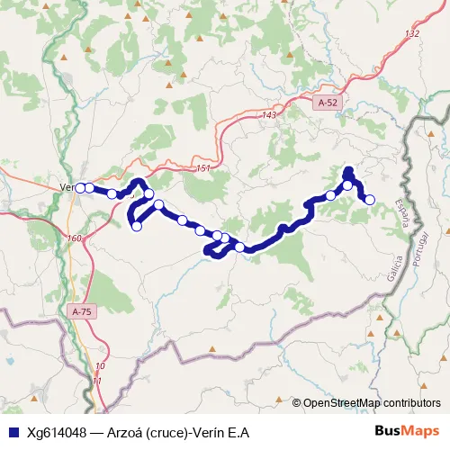 Click here to view the nearest Xg614048 - Arzoá (cruce)-Verín E.A bus stop.
