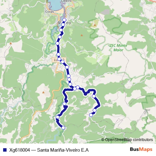 The first stop of the Xg618004 bus route is Santa Mariña and the last stop is Viveiro E.A.. Xg618004 (Santa Mariña-Viveiro E.A) is operational during cada dia.