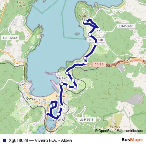 The first stop of the Xg618028 bus route is Viveiro E.A. and the last stop is Aldea. Xg618028 (Viveiro E.A. - Aldea) is operational during dies feiners.