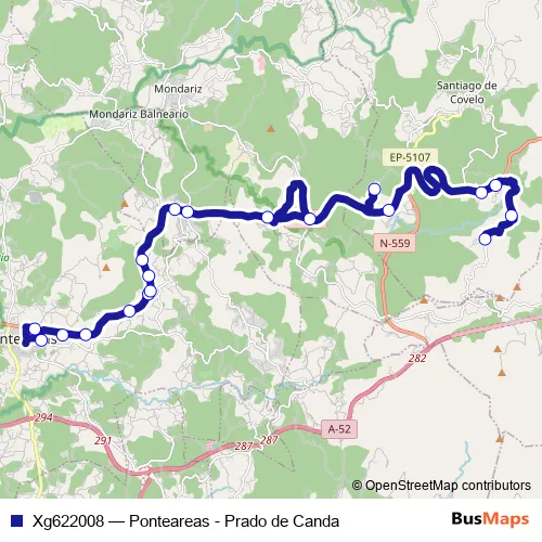 Bus Xg622008 - Ponteareas - Prado de Canda: Full Schedule in Mondariz-Balneario
