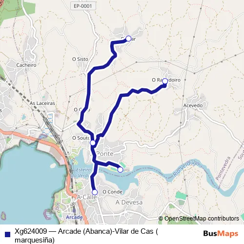 Click here to view the nearest Xg624009 - Arcade (Abanca)-Vilar de Cas (marquesiña) bus stop.
