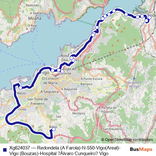 Bus Xg624037 - Redondela (A Farola)-N-550-Vigo(Areal)-Vigo (Bouzas)-Hospital?Álvaro Cunqueiro? Vigo: Full Schedule in Vigo