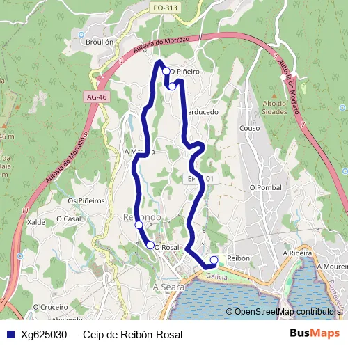 Click here to view the nearest Xg625030 - Ceip de Reibón-Rosal bus stop.