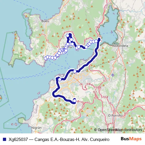 Click here to view the nearest Xg625037 - Cangas E.A.-Bouzas-H. Alv. Cunqueiro bus stop.