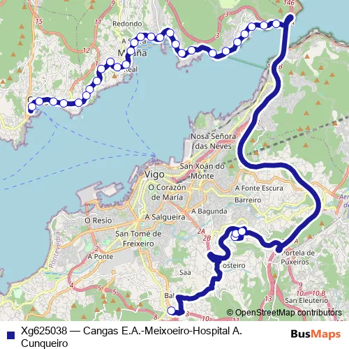 Bus Xg625038 - Cangas E.A.-Meixoeiro-Hospital A. Cunqueiro: Full Schedule in Moana