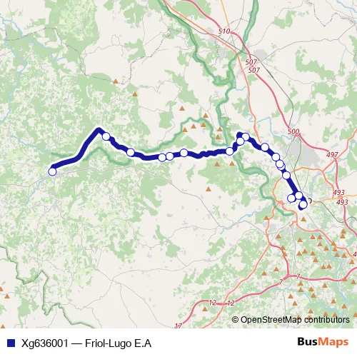 The first stop of the Xg636001 bus route is Lugo E.A. and the last stop is Friol. Xg636001 (Friol-Lugo E.A) is operational during cada dia.
